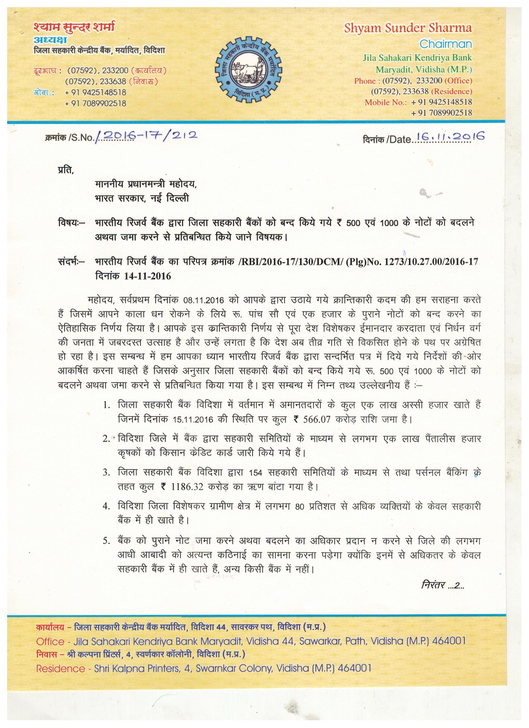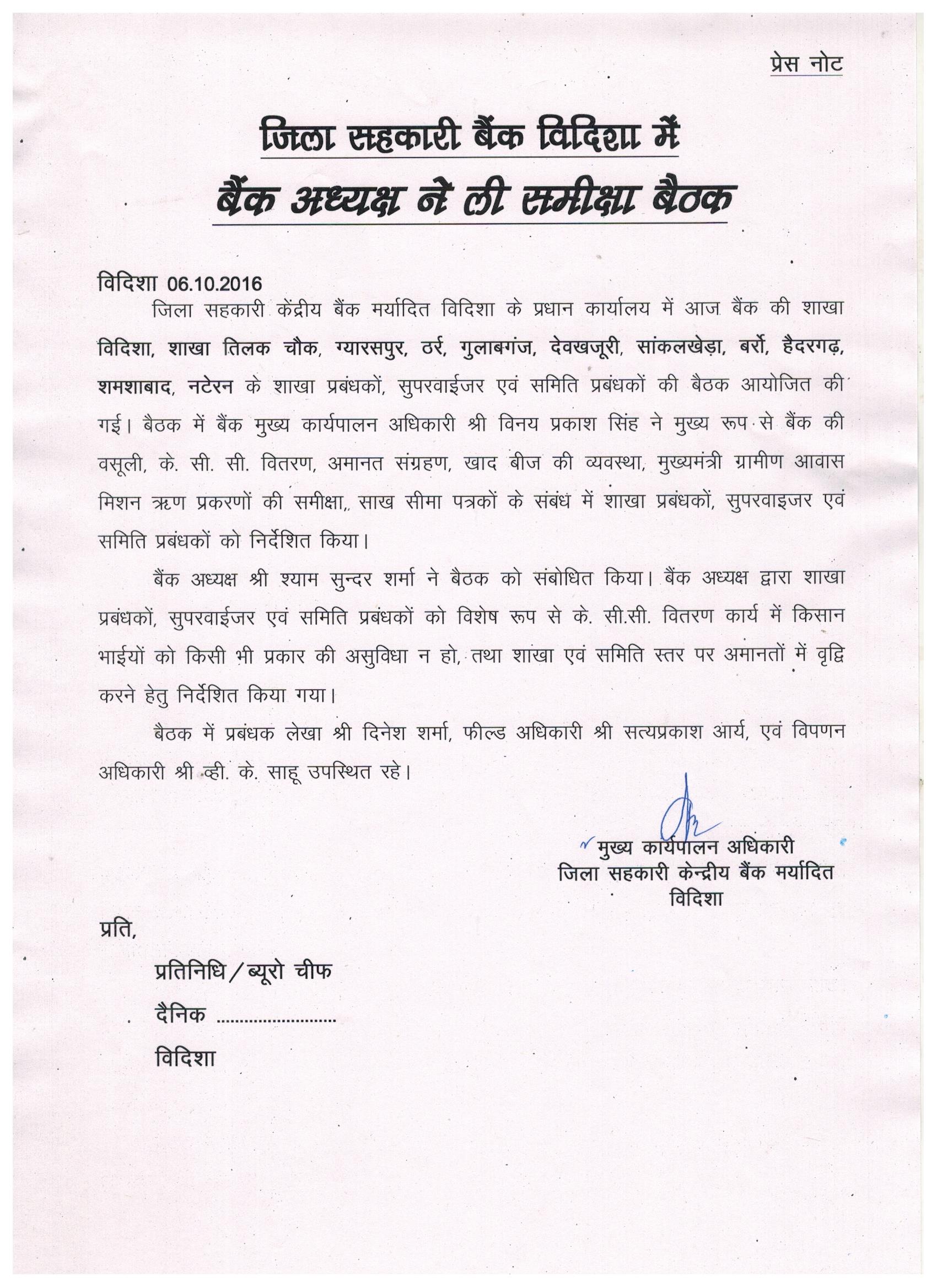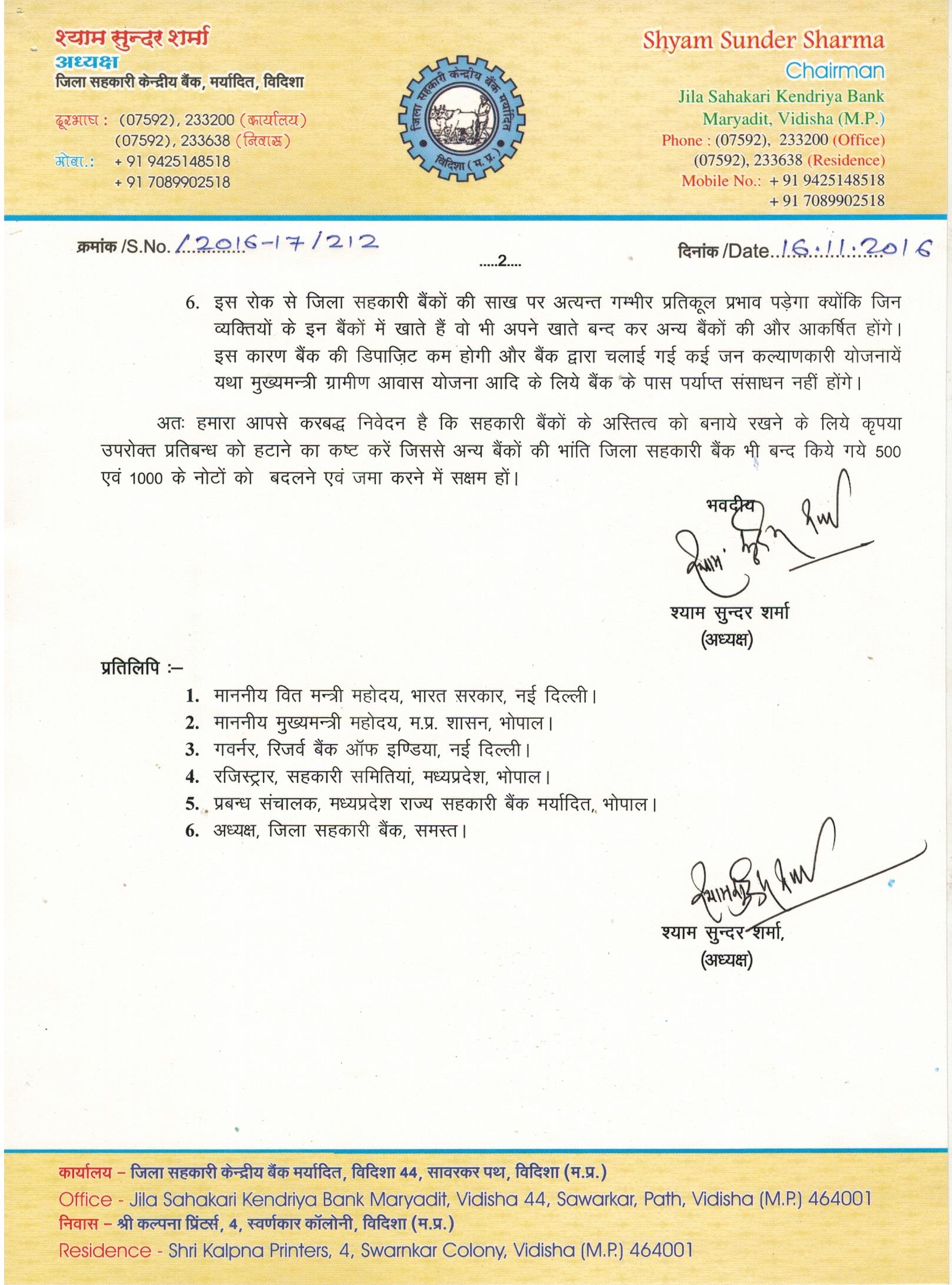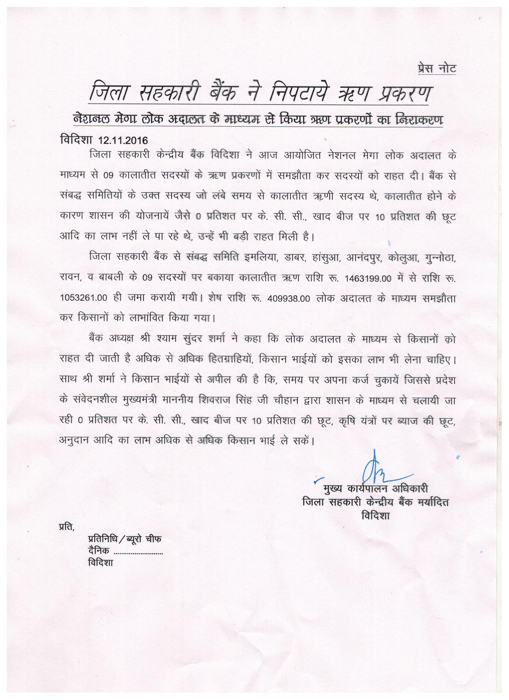 जिला सहकारी केंद्रीय बैंक विदिशा में तारीख 16 Nov 2016