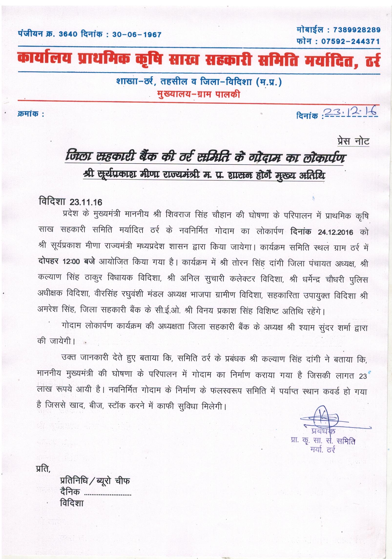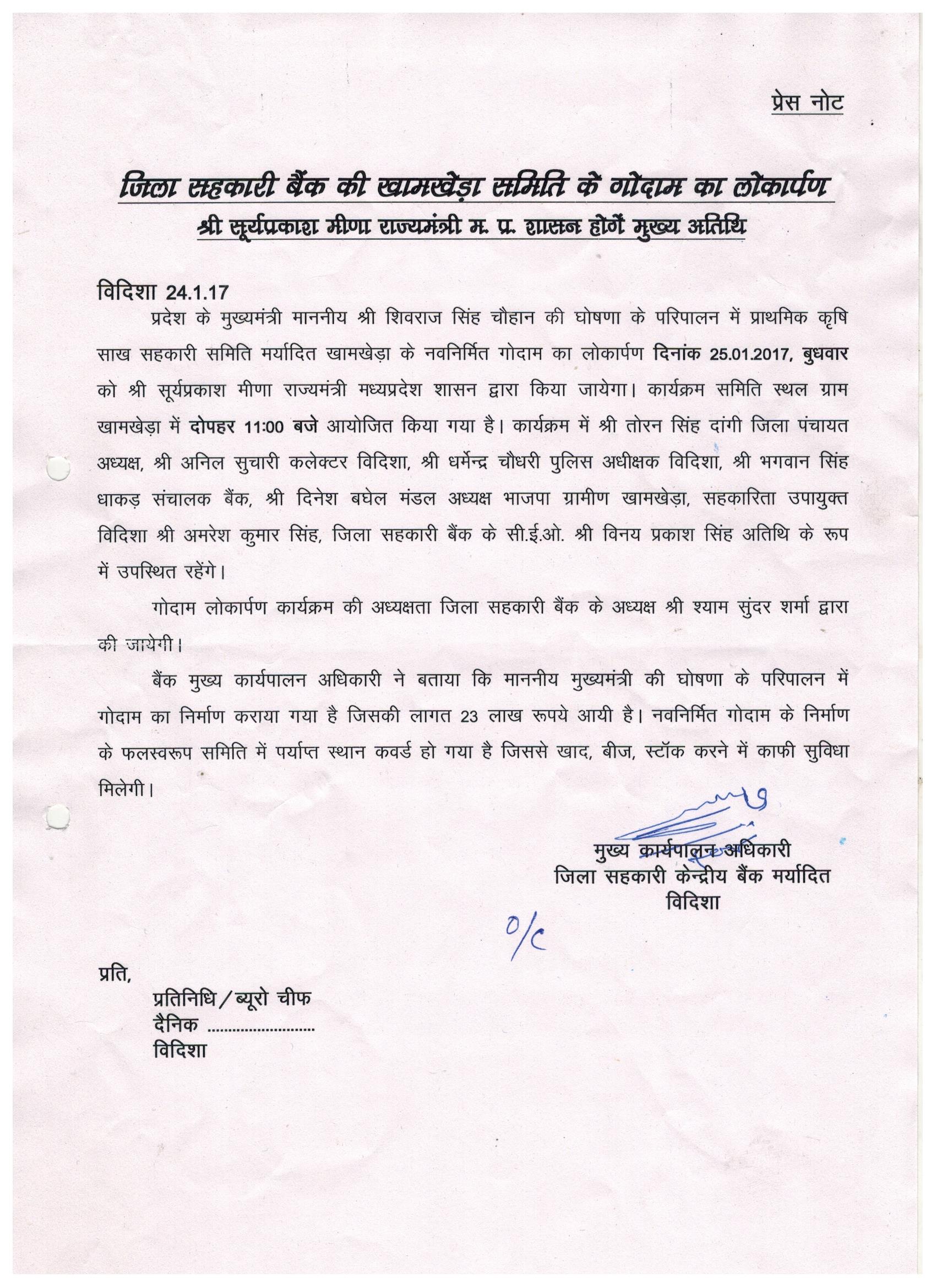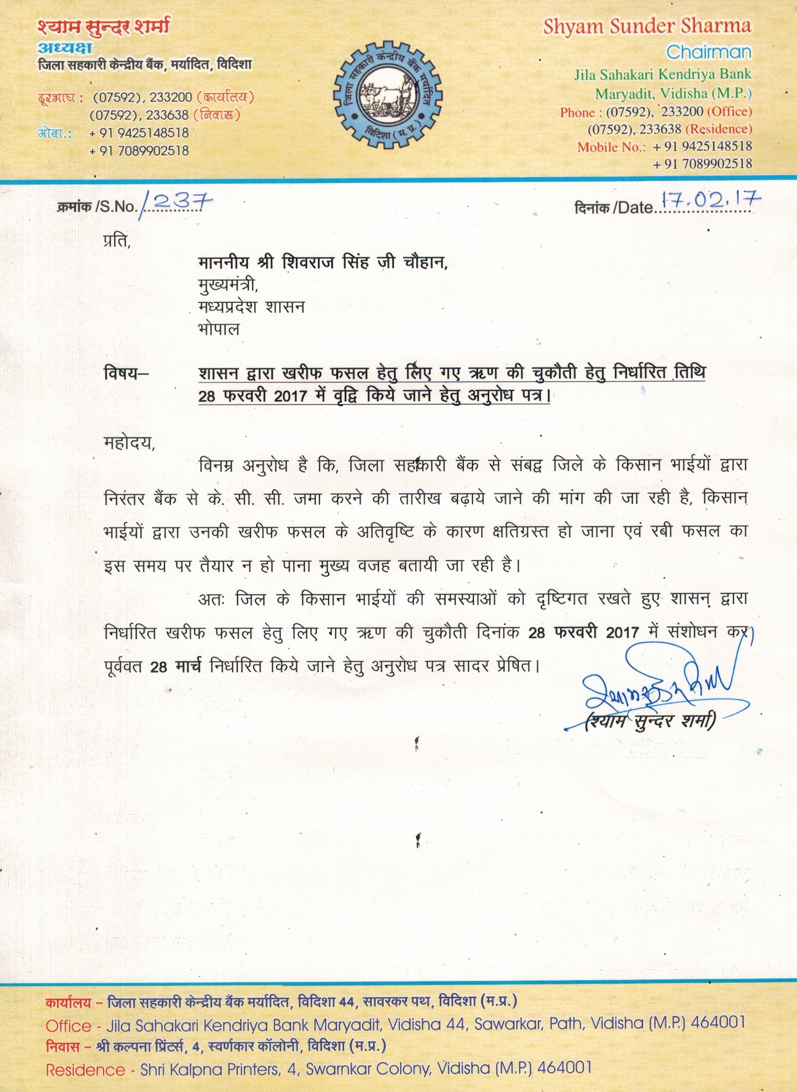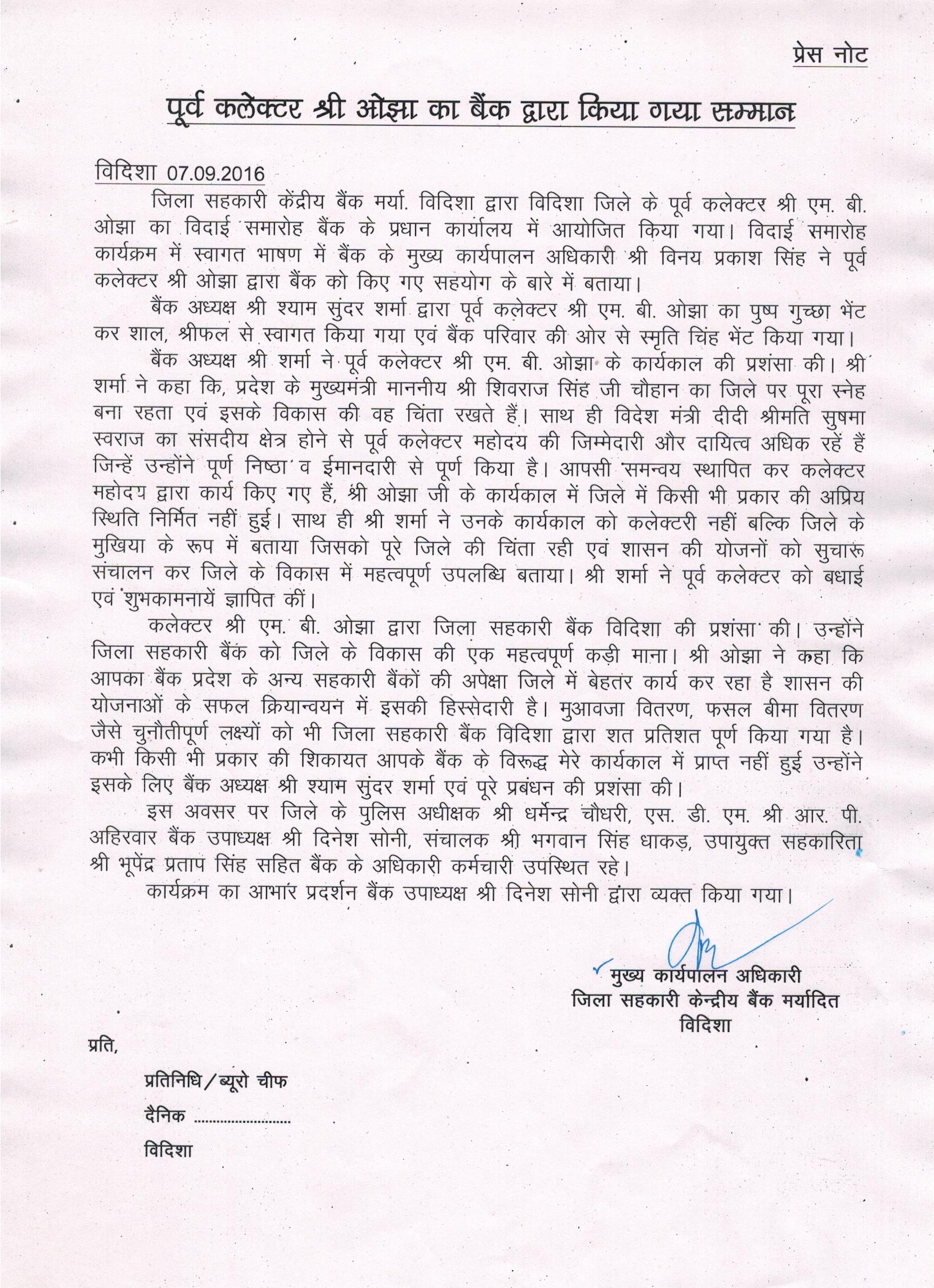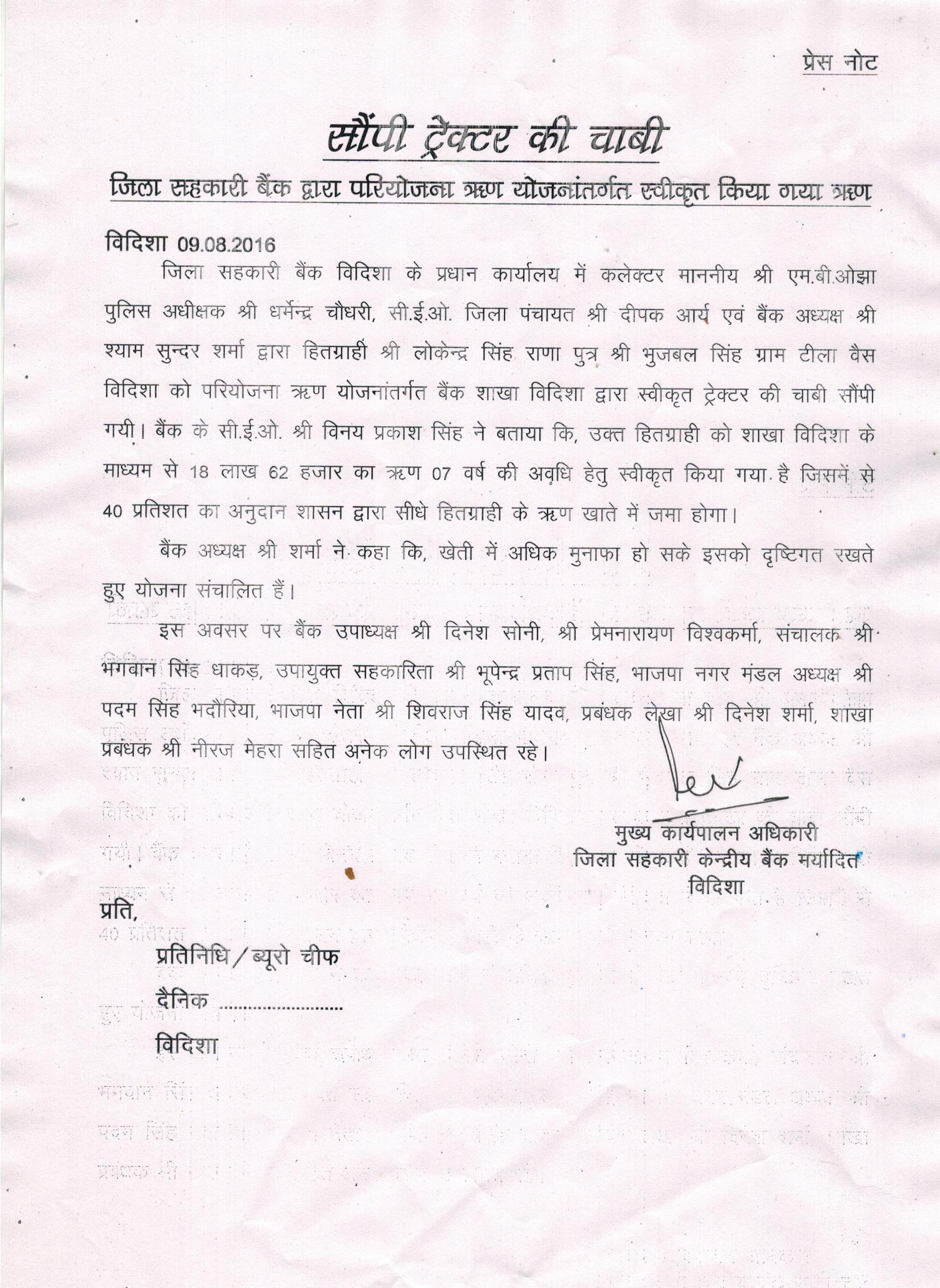 जिला सहकारी केंद्रीय बैंक विदिशा में तारीख 16 Nov 2016